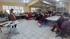 Durante la visita, se trabajó con alumnos de distintos grados en contenidos específicos acorde a su etapa educativa. Para los estudiantes de primer grado, se impartió el tema “Prevención del consumo del tabaco y vapeadores”, con el objetivo de generar conciencia sobre los riesgos a la salud.